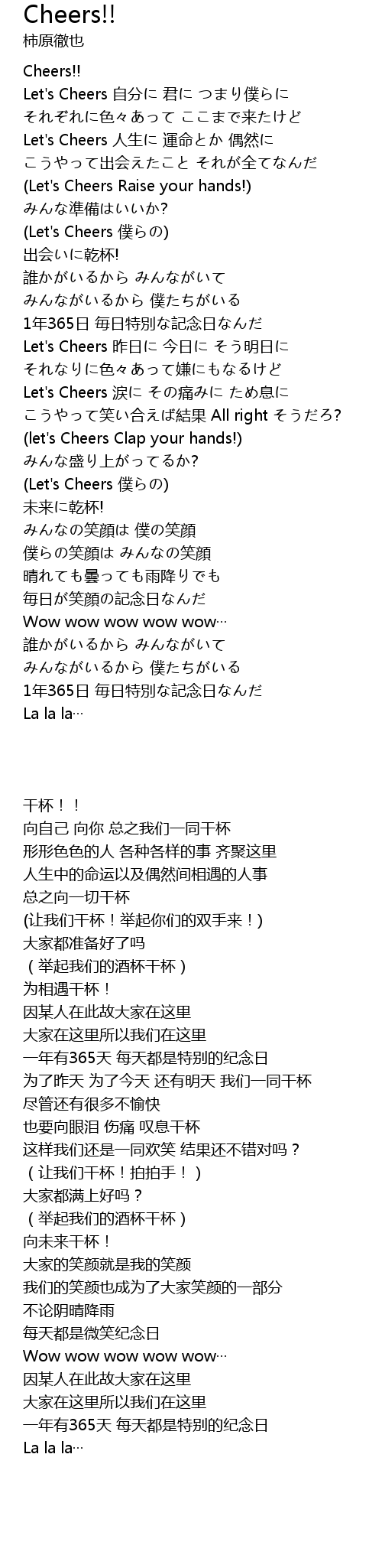 | [00:38.62] | Let' s Cheers Raise your hands! |