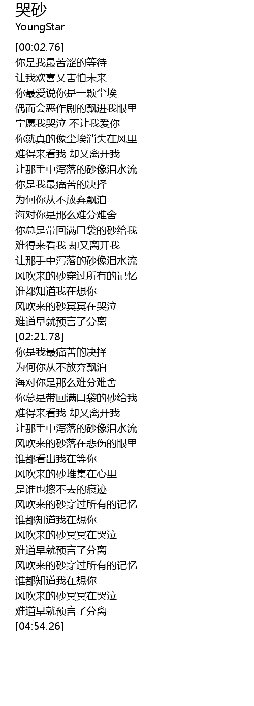 | [01:05.47] | 让那手中泻落的砂像泪水流 |