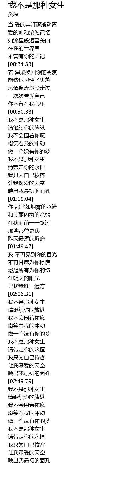 | [02:50.30] | wǒ bú shì nà zhǒng nǚ shēng |