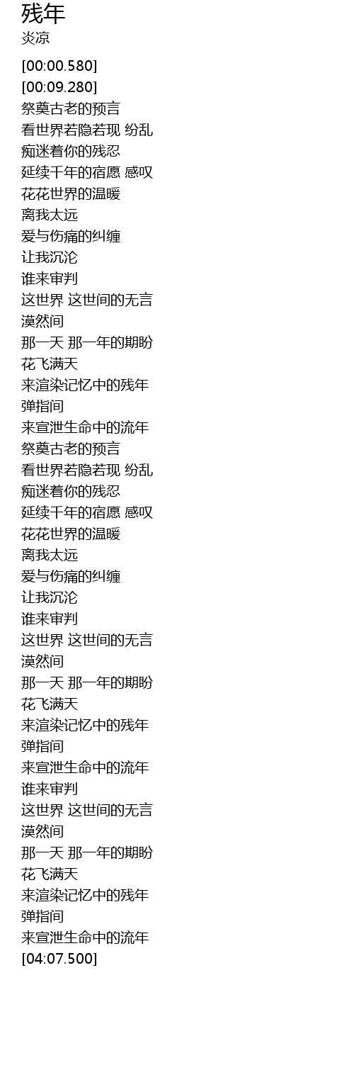 | [00:33.700] | yán xù qiān nián de sù yuàn gǎn tàn |