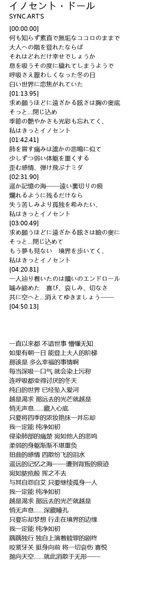 | [04:13.64] | 私はきっとイノセント |