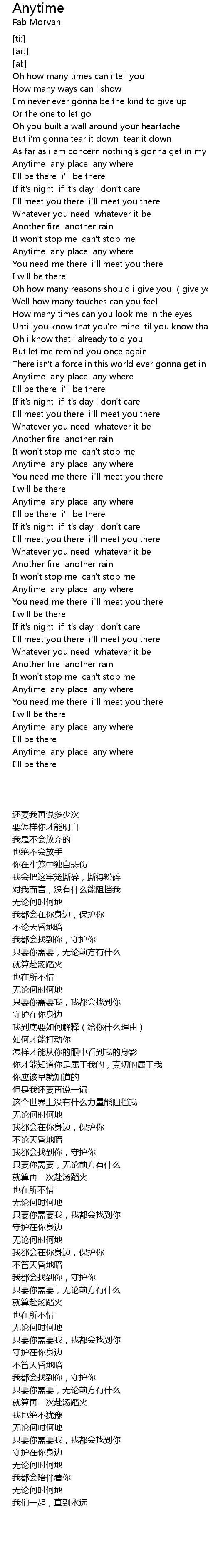 | [03:01.18] | You need me there i' ll meet you there |