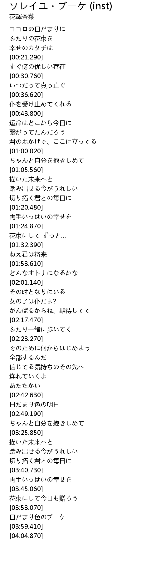 | [03:53.960] | 日だまり色のブーケ |