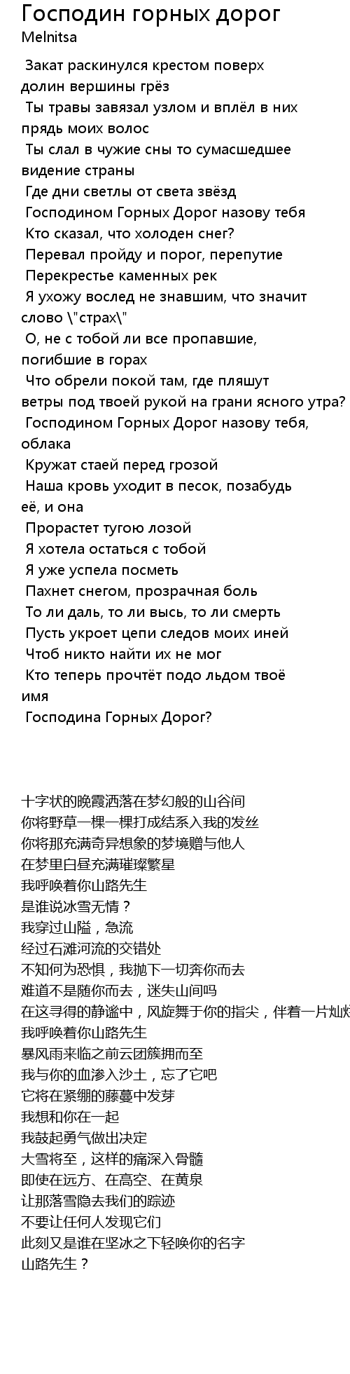Господином Горных Дорог назову тебя |
