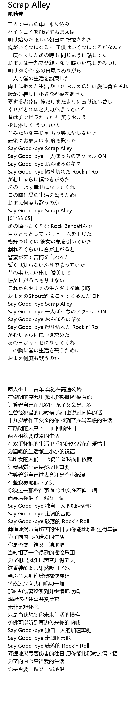 | [03:00.58] | Say Goodbye Scrap Alley |