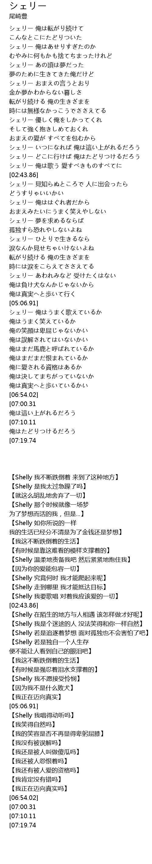 | [07:50.96][07:19.74] | シェリー 俺は歌う 愛すべきものすべてに |