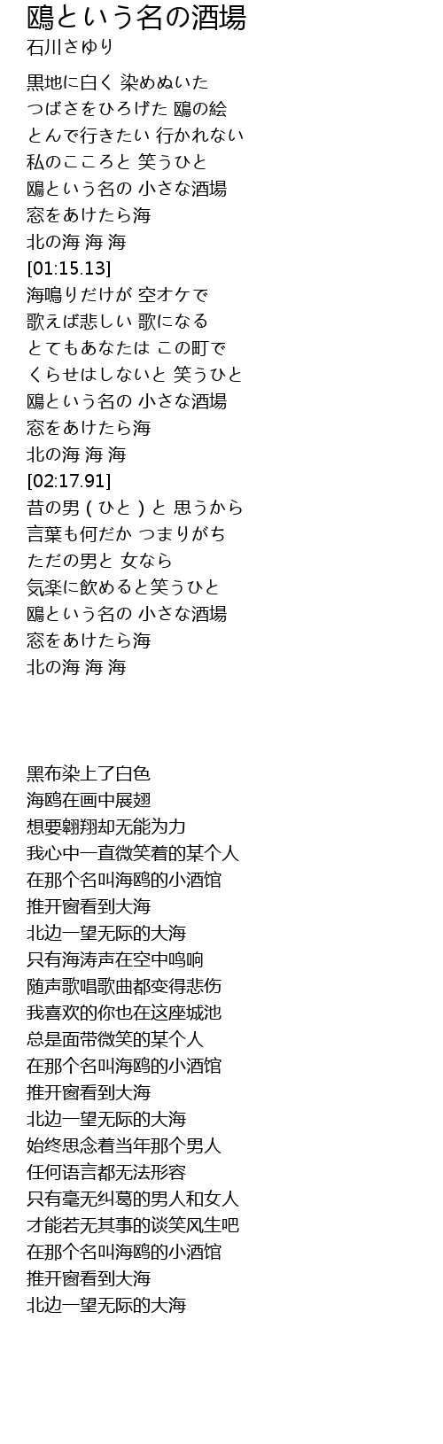 | [03:15.87] | 鴎という名の 小さな酒場 |
