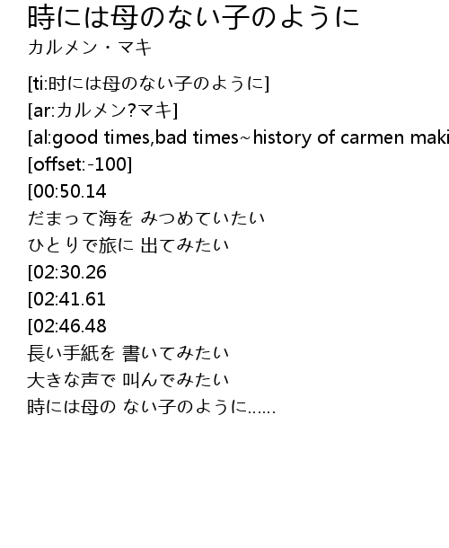 | [00:29.00][00:50.14][01:47.80][02:08.69] | 時には母の ない子のように |