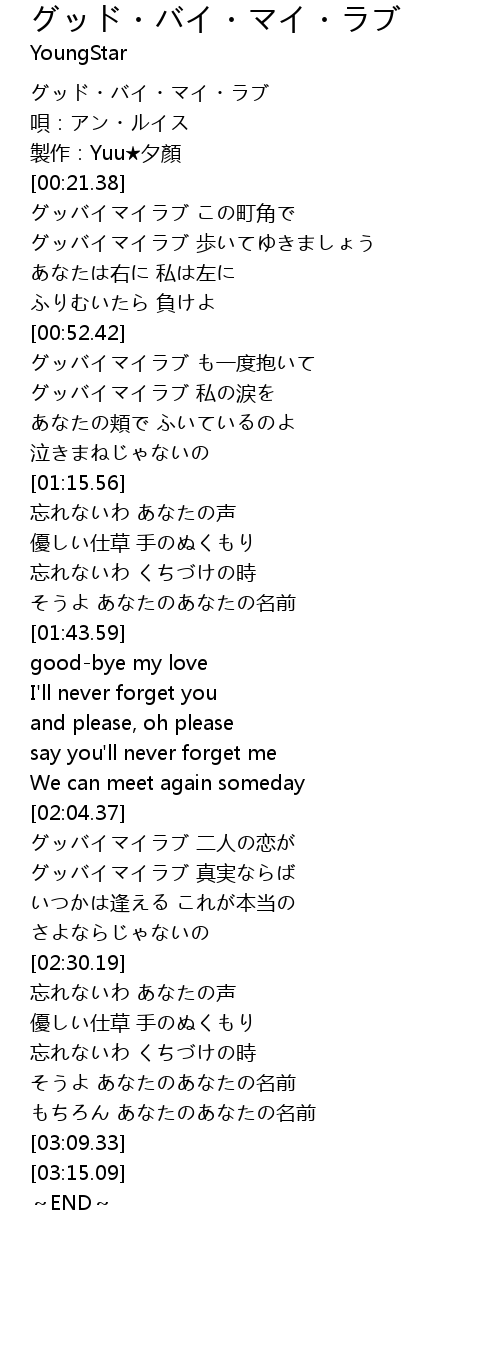 | [02:07.49] | グッバイマイラブ 二人の恋が |