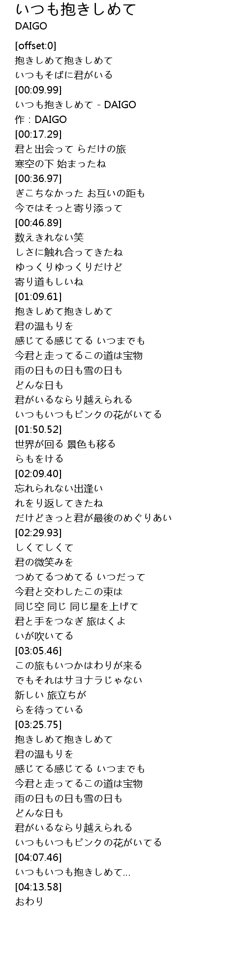 | [00:11.98] | いつも抱きしめて - DAIGO |