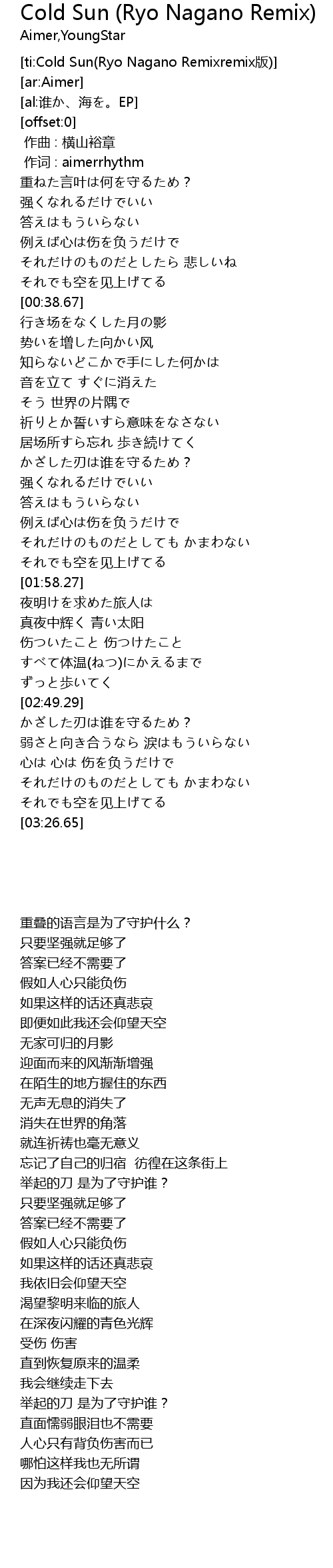 | [ti:Cold Sun(Ryo Nagano Remixremix版)] | |