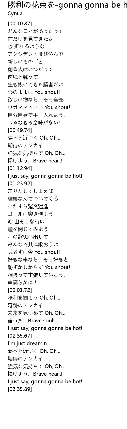 | [03:25.16] | I just say, gonna gonna be hot! |