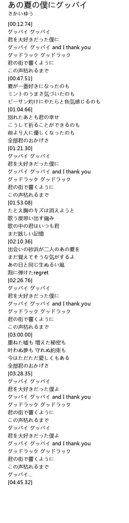 | [04:09.98] | グッバイ グッバイ and I thank you |
