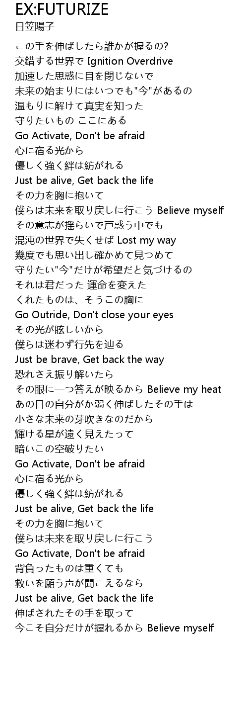 | 僕らは未来を取り戻しに行こう Believe myself | |