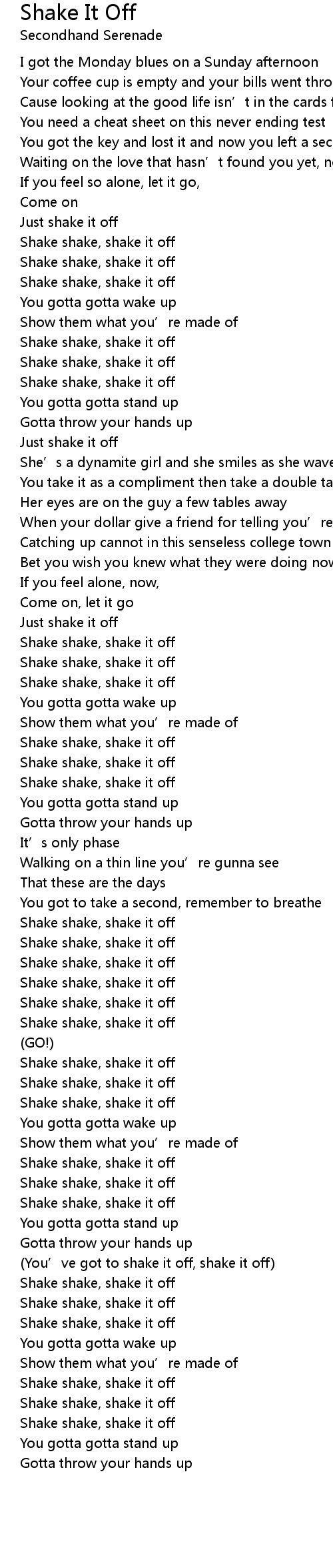 | [02:47.28] | (You’ve got to shake it off, shake it off) |