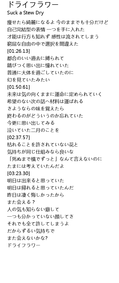 | [02:19.81] | 終わるのがどういうのか忘れていた |