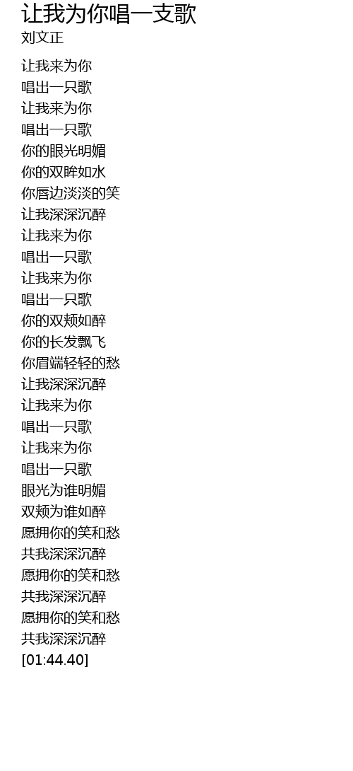 | [00:41.01] | ràng wǒ lái wèi nǐ |