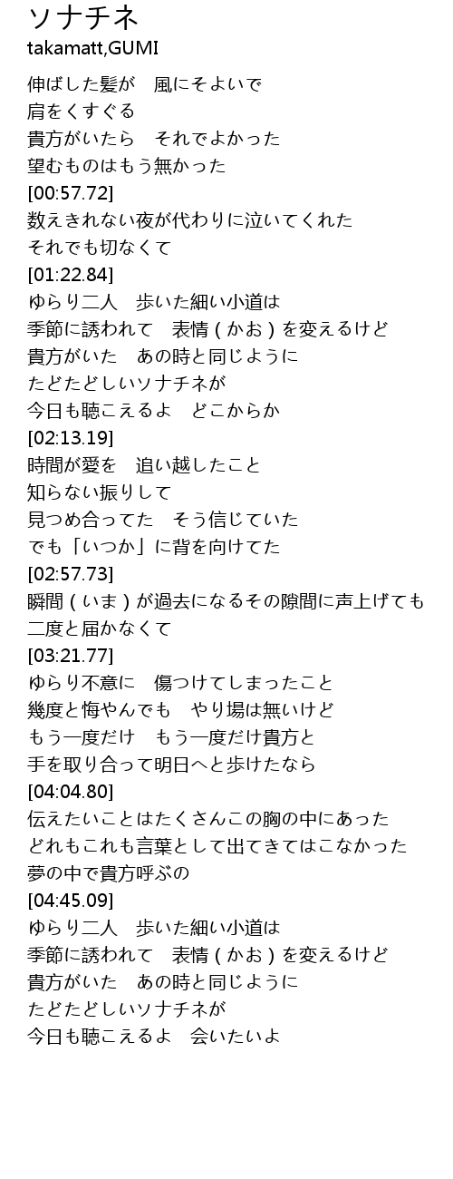 | [03:22.02] | ゆらり不意に 傷つけてしまったこと |
