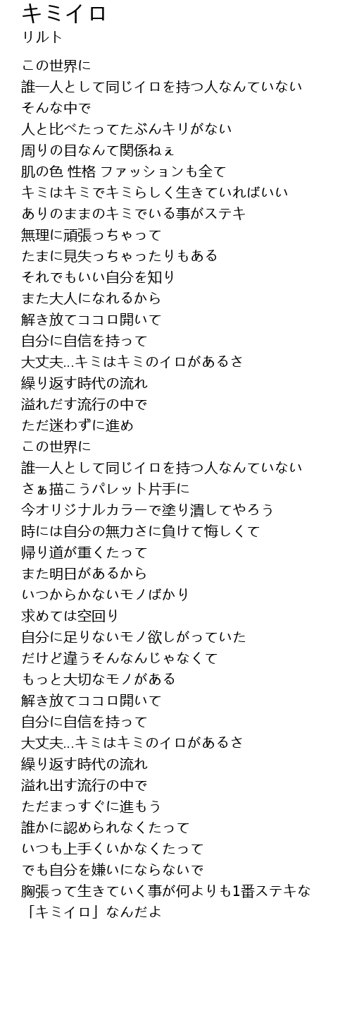 | [01:23.110] | 大丈夫…キミはキミのイロがあるさ |