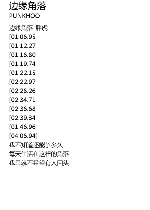 | [00:00.18] | biān yuán jiǎo luò pàng hǔ |