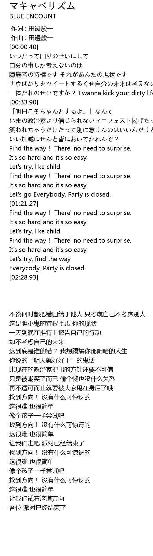| [01:58.31] | Find the way! There' no need to surprise. |