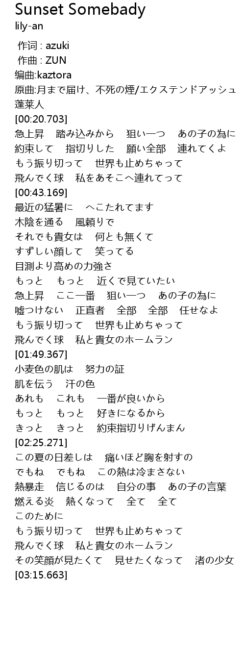 [00:13.938] 原曲:月まで届け、不死の煙/エクステンドアッシュ ~ 蓬莱人