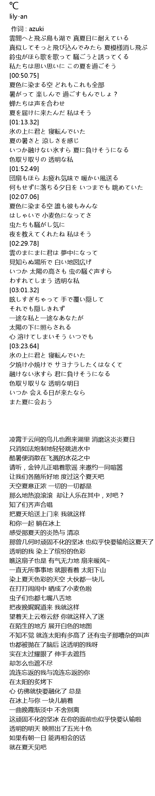 | [01:27.45] | いつか融けない氷すら 夏に負けそうになる |