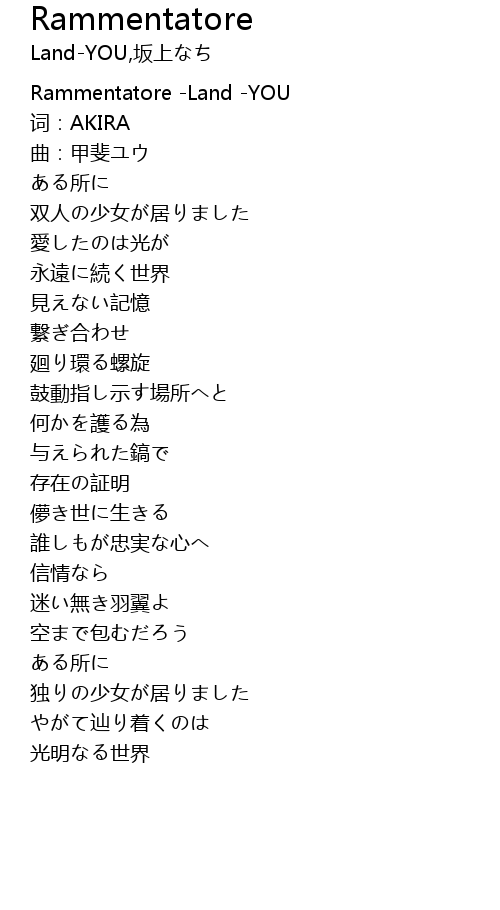 | [00:00.00] | Rammentatore -Land -YOU |