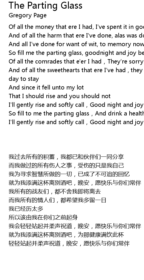 | [00:30.52] | So fill me the parting glass, goodnight and joy be with you all |