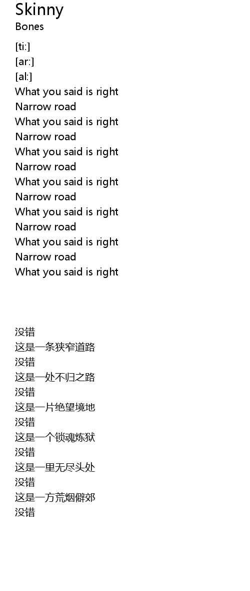 | [00:49.55] | Narrow road |