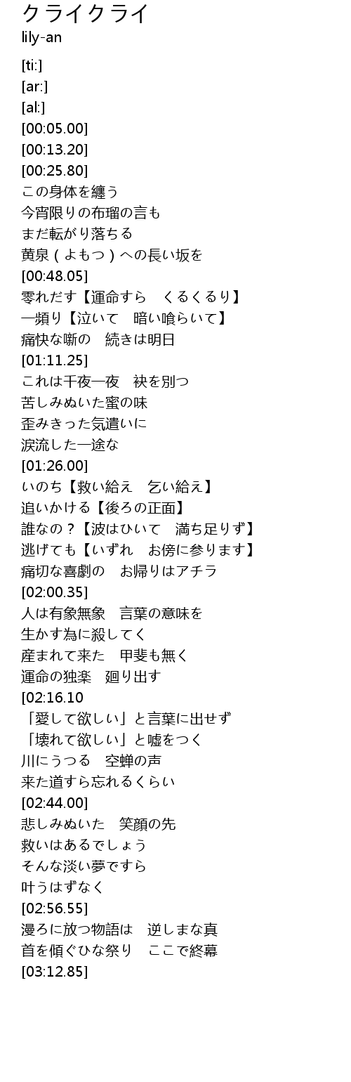 | [00:54.65] | 一頻り【泣いて 暗い喰らいて】 |