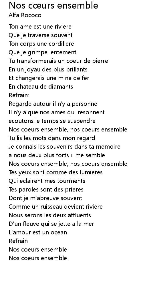 Nos coeurs ensemble, nos coeurs ensemble |