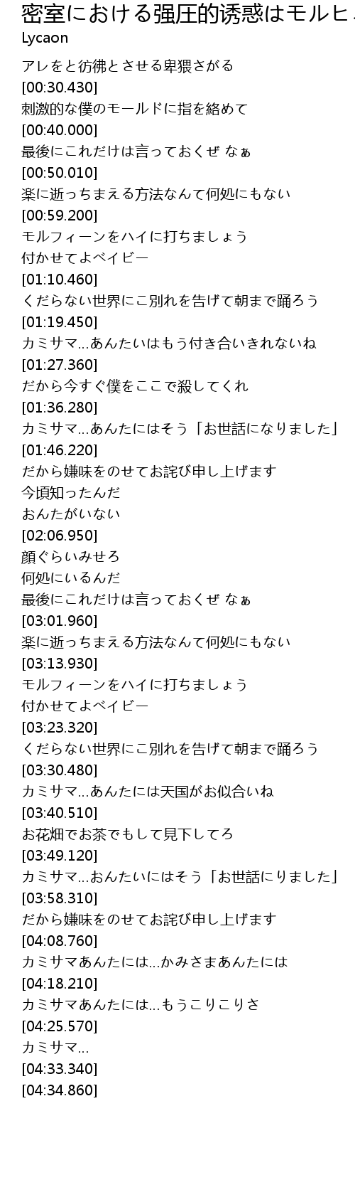 | [01:01.250] | モルフィーンをハイに打ちましょう 付かせてよべイビー |