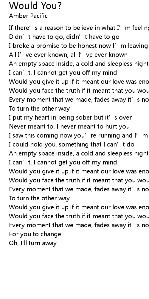 | Would you give it up if it meant our love was enough to carry you? | |