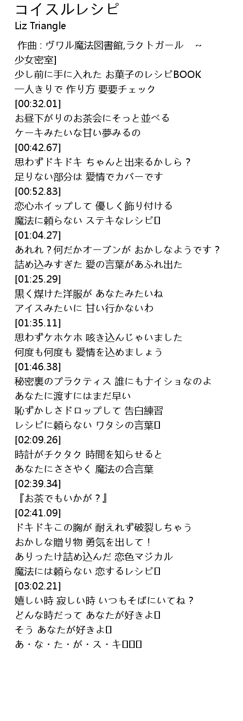 | [02:02.74] | レシピに頼らない ワタシの言葉❤ |