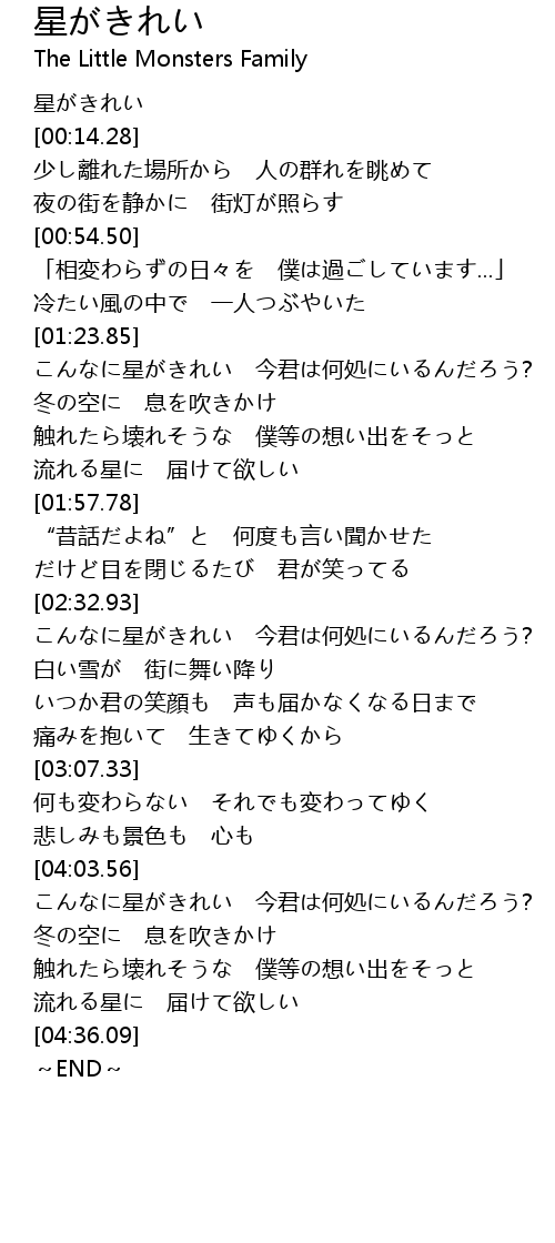 | [00:00.00] | 星がきれい |