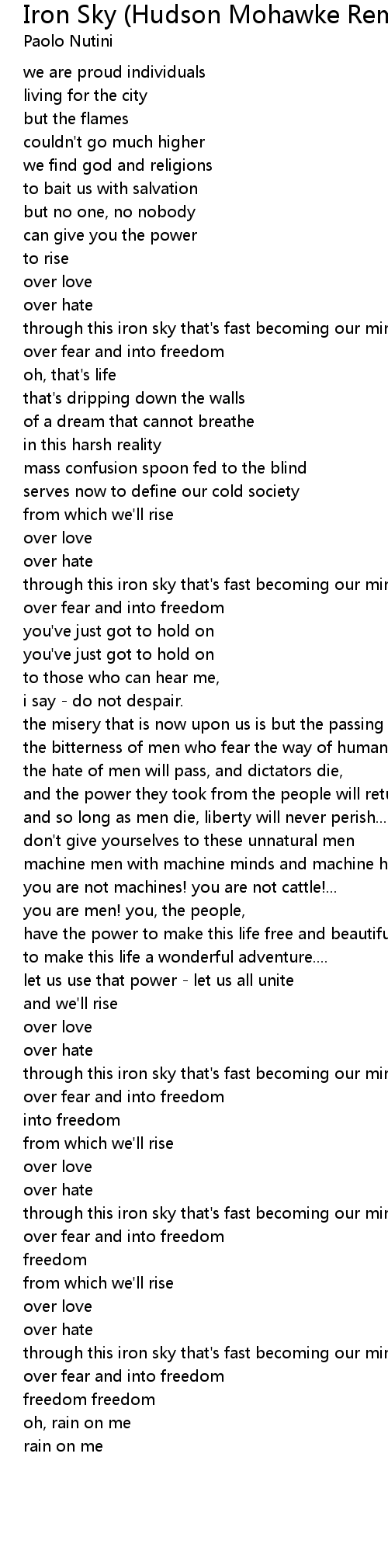 through this iron sky that's fast becoming our mind |