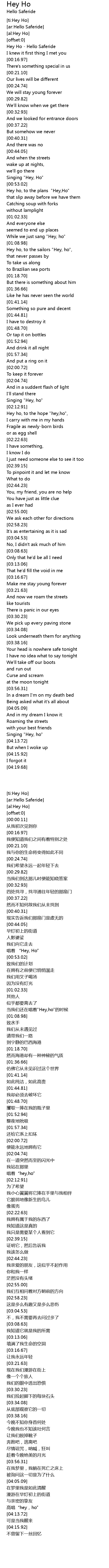 [00:00.11] Hey Ho - Hello Saferide