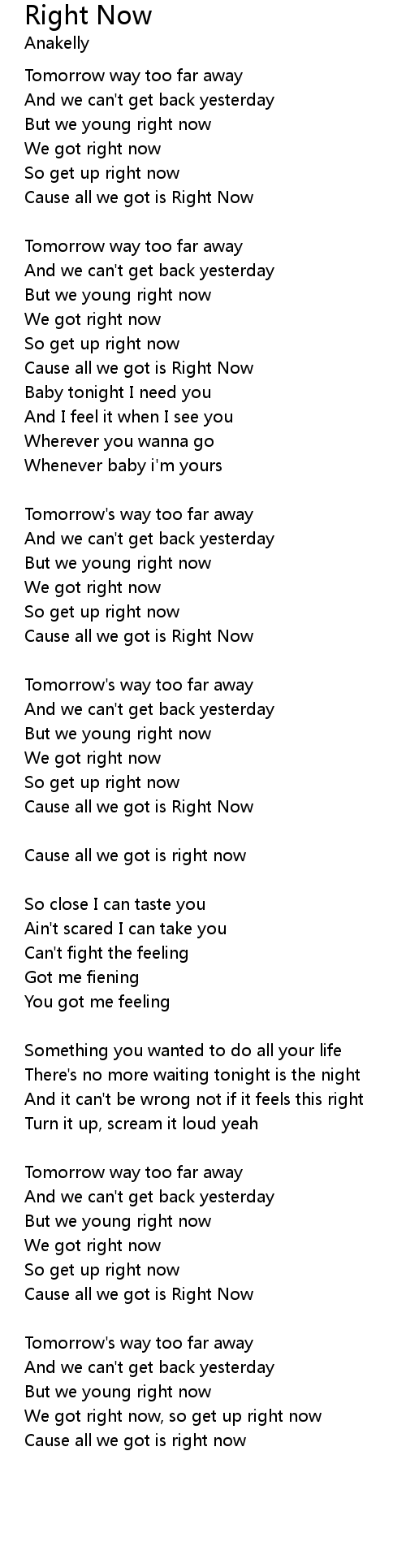 Cause all we got is Right Now |
