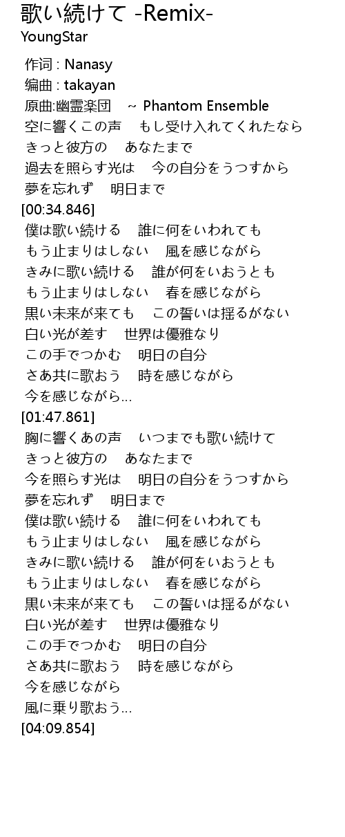 | [03:52.512] | さあ共に歌おう 時を感じながら |