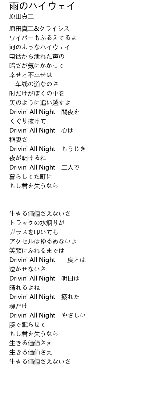 | Drivin' All Night 二度とは | |