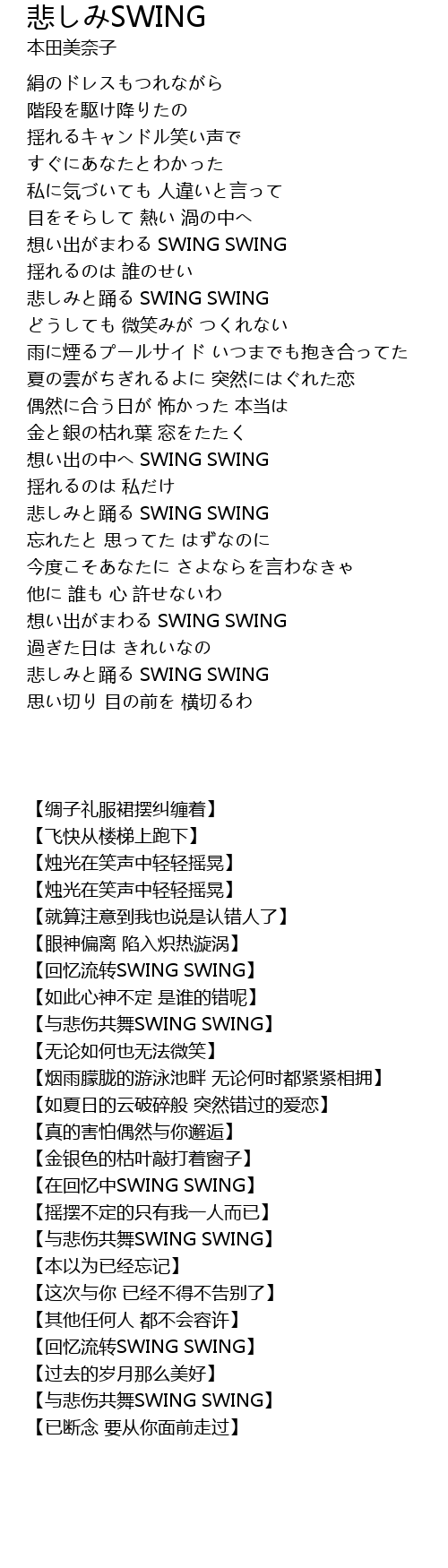 | [01:46.45] | 悲しみと踊る SWING SWING |