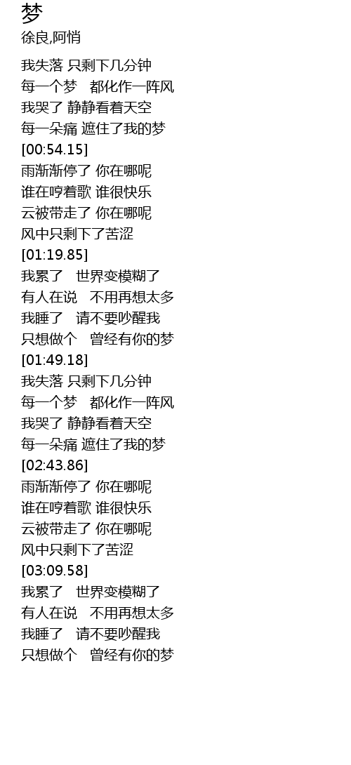 | [03:32.19] | 只想做个 曾经有你的梦 |