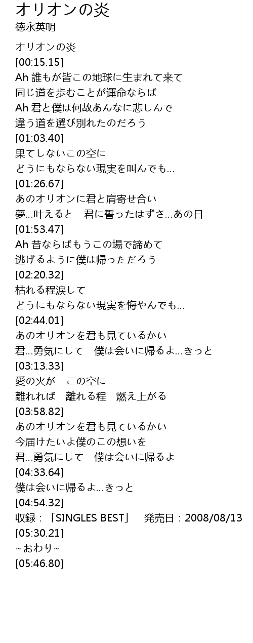 | [04:00.31] | あのオリオンを君も見ているかい |