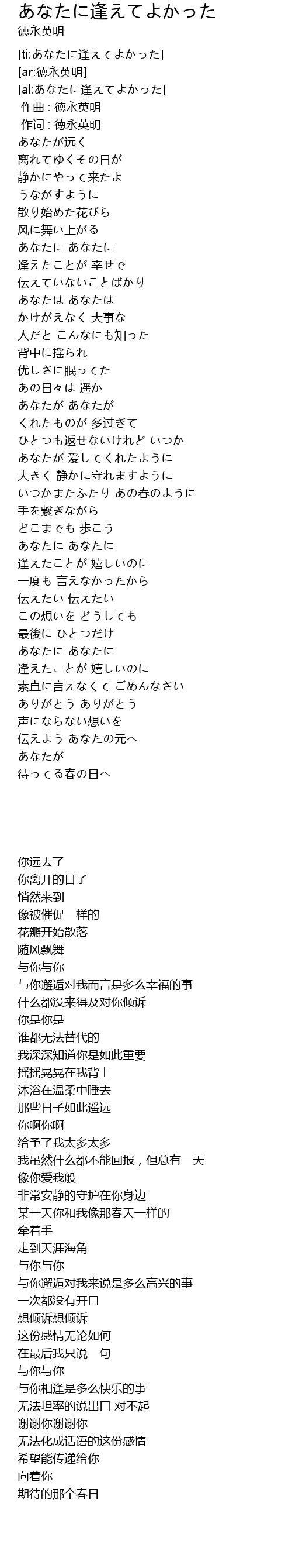 | [04:42.867] | 逢えたことが 嬉しいのに |