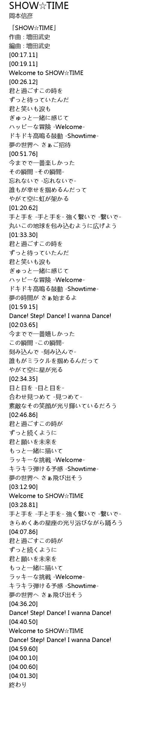 | [03:23.54] | Welcome to SHOW☆TIME |