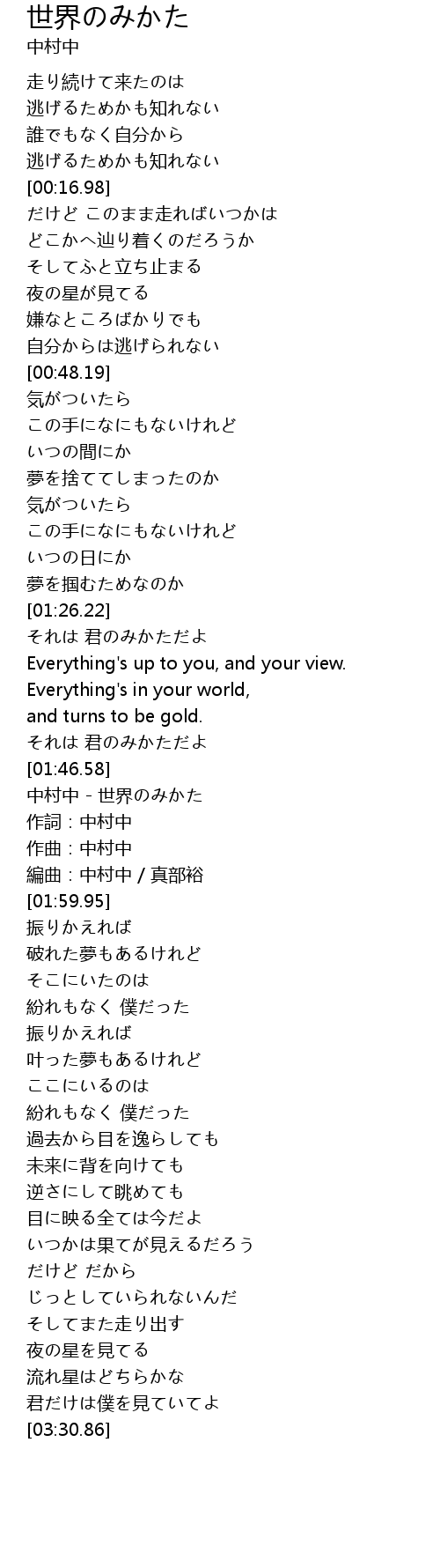 | [01:57.44] | 編曲:中村中 / 真部裕 |