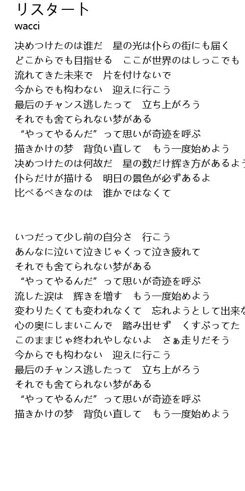 | 流した涙は 辉きを増す もう一度始めよう | |
