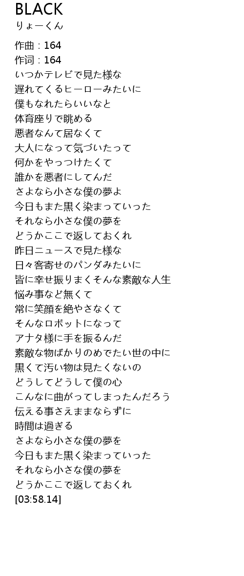 | [03:23.17] | 今日もまた黒く染まっていった |