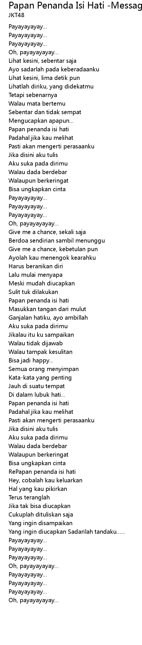 | Song | Papan Penanda Isi Hati -Message On A Placard- |